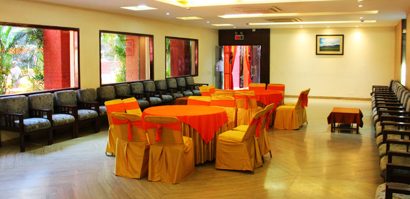 Centrally air-conditioned banquet hall attached with lawns can accommodate 300 persons. Economical banquet packages available for social function, wedding, conference