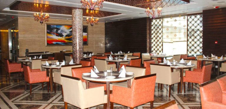 Bazm Restaurant – An array of culinary delights and sumptuous buffet makes this 80 cover multi – cuisine Restaurant an ideal venue for the luncheon meeting or a relaxed dinner amidst the pool-side view. The Restaurant serves Indian choices and other cuisines. For an exotic ambience, a lavish buffet is spread out during lunch and dinner. A well-stocked Bar compliments the spirits.