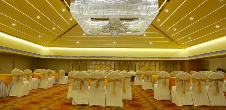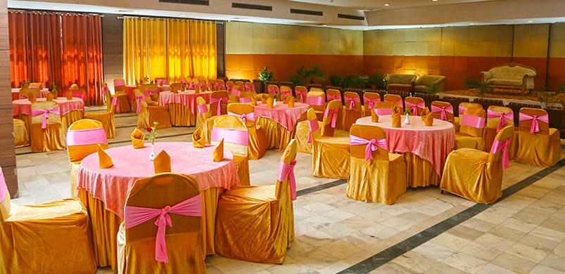 Centrally air-conditioned banquet hall attached with lawns can accommodate 300 persons. Economical banquet packages available for social function, wedding, conference