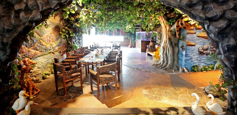 Rain Forest Hall – has capacity of 50 persons having unique art work depicting “Jungle Theme” and ideal choice for an exclusive get together/party. Jungle Theme based hall inspires to get a feel of jungle complete with gushing water fall and nature inspired surroundings. Come enjoy and have a feel of exclusive cuisine in exotic ambience.